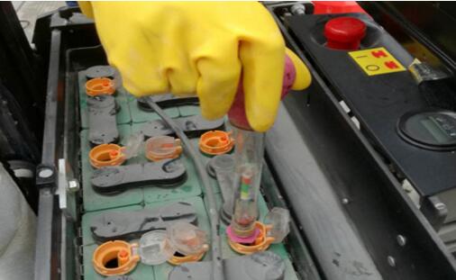 用滴管吸入蒸餾水由排氣孔注入電瓶。把加好水的電瓶用透氣的遮擋物覆蓋排氣孔,以防止灰塵落入排氣孔。最好用醫用的二次蒸餾水。補水的原則是寧少勿多。不夠可以再加,多了造成酸比重下降,電瓶容量就會不足。無經驗者可以按每孔5mL掌握,補水工具使用玻璃、塑料等吸管。北京叉車出租公司建議使用醫用一次性注射器,使用方便而且方便計量。補水工具不能使用任何含金屬的器具,注射器應拔去金屬針頭,套一節塑料管后使用。